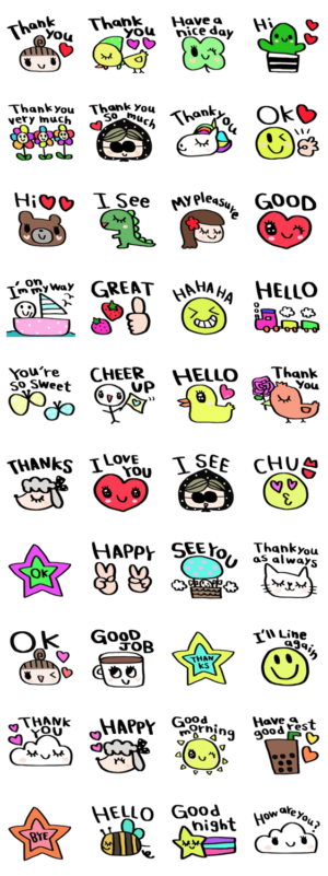 日本語英語韓国語タイ語中国語ございます。絵文字や着せ替えもございます。英語スタンプnenerin より発売