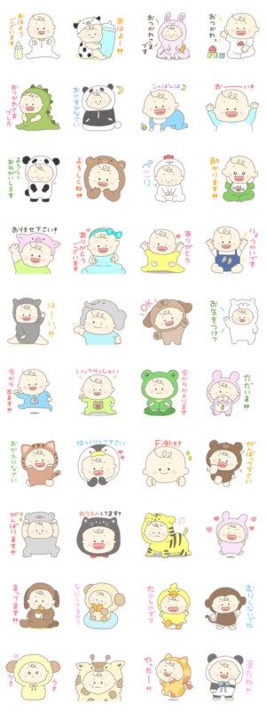 日常会話でよく使うあいさつや敬語、イベントごとに使える言葉がたくさん!着ぐるみや動物が大好きな赤ちゃん☆家族、カップル、ママ友、職場の仲間に!