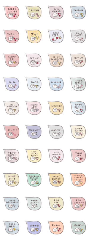 気持ちを伝える、1つあると便利な省スペーススタンプです。シンプル/かわいい/大人可愛い/くすみ/毎日使える/ふんわり/ゆる/吹き出し/スマイル/あいさつ/敬語