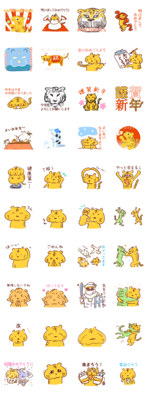 再販)年末年始に使える ! あけおめトラ2022 スタンプ画像一覧