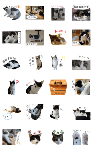 日常的に使える写真スタンプです。『白黒ハチワレ猫のぽんず』『ギジ白ハチワレ猫のみりん』です!どうぞよろしくお願いします。take より発売