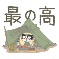 キャンプをしているネコのスタンプです。キャンプ仲間とのやりとりに使えます。