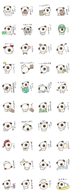 全部一緒がいい♡シュールなミニパグのスタンプです。eribo より発売