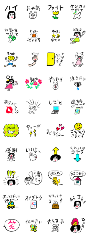 ちょびっとシュールな手描き感ムンムンのスタンプです。デカ文字、筆文字、毎日使える敬語丁寧語