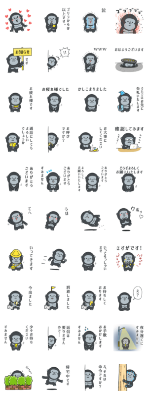 仲の良い先輩や目上の方にも使いやすい、おちゃめな ゴリラ のスタンプです。 挨拶 連絡 敬語 大人 日常 ごりらもふごり より発売