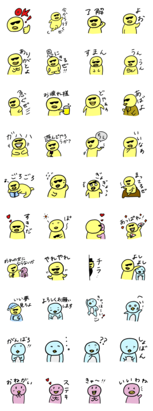 アヒル親分とペンギン子分、ガールフレンドのコトリちゃんのスタンプです。urawaka より発売