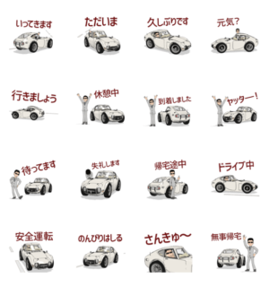 愛する車をデフォルメして動くスタンプにした。モーターサイクルが好き。4輪車でドライブする。スポーツカーが好みのドライバーです。bon より発売