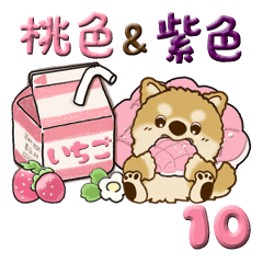 茶色い犬のちゃちゃ丸の桃色と紫色のいつもよく使う言葉のスタンプです。(柴犬、〇〇犬・・・日本犬のつもりです...)藤花 より発売
