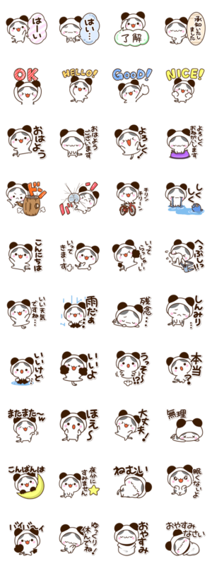 『ちびブチ』のぶちネコが、ぱんだの被り物を着けました。毎日便利な白黒猫スタンプ。ねこ好きな方にぜひ。【かたこ】かたこ より発売