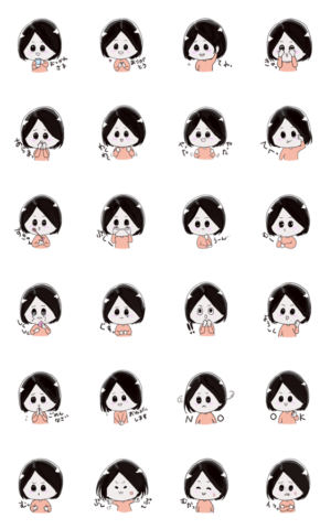 表情豊かな女の子のスタンプです。taw より発売