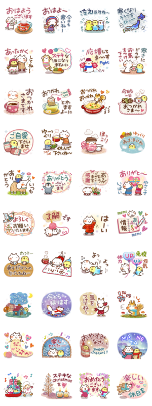 冬の寒さが暖まるようなかわいいスタンプ。これからの季節にピッタリだからガンガン使います!