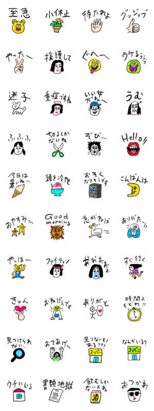 ごくごく普通のシュール挨拶スタンプです。毎日使える、かわいい、大人女子、敬語丁寧、デカ文字、手描き、ママ友、お仕事、家族連絡、武士語。
