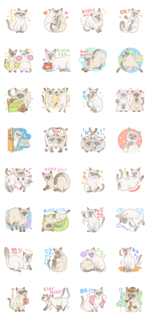 トンキニーズのイラストスタンプ第2弾です。今回は毛色の違うトンキちゃんも描いてみました。よろしくお願いします♪ぬく子 より発売