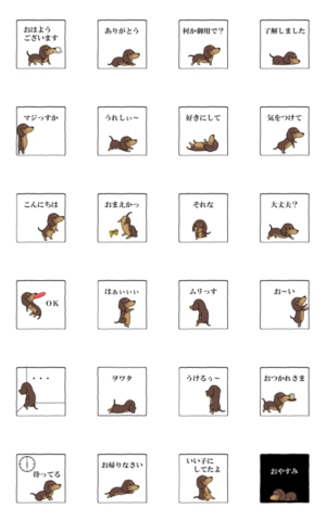 言うほど激しく尻尾を振っているわけではないが、アニメーションがトコトコかわいい。メッセージがバッチリ読みやすいのもポイント。また全体的にカジュアル向け。