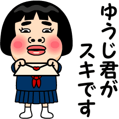 ゆうじ(ユウジ)君が大好きな女子中学生。セーラー服、昭和レトロ、ノスタルジー、ノスタルジック、青春、恋愛、初恋、告白。芋ジャージの名前スタンプの『くーが』作。