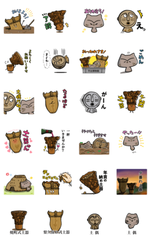 長野県塩尻市立平出博物館の土器や土偶たちがキャラクターになって登場!毎日使いやすいスタンプです。