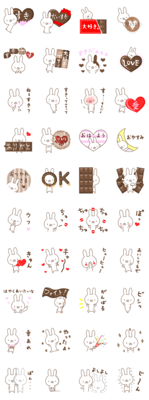 バレンタインにピッタリなうさぎにチョコのスタンプです。ねこぜ より発売