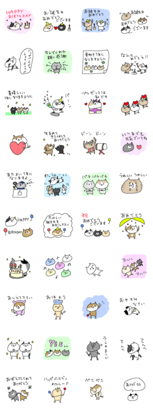 にしおかあきの誕生日猫です。友達や家族、カップルに使えるお祝いスタンプ。敬語もありです。プレゼントにも!!にしおかあき より発売