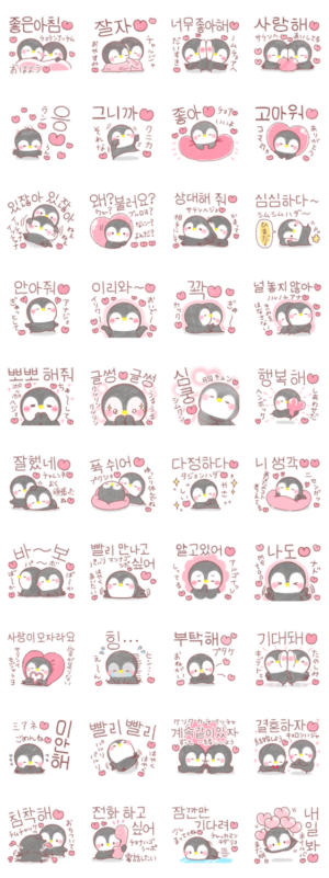 ぽぽんえすの大人かわいいメッセージぺんぎん♡ラブラブ恋愛カップル彼氏彼女友達家族夫婦旦那妻オタクが使うほのぼの子どもペンギンの韓国語2!日本語つき♡
