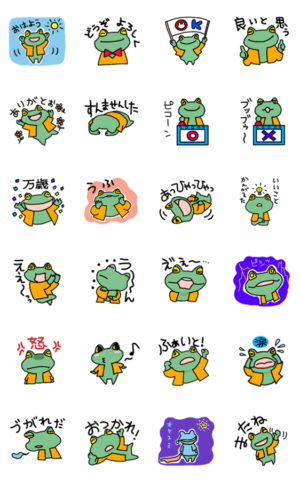 カエルくんの とてもノーマルなスタンプとなっております。日常の お供にどうぞ。mikamo より発売