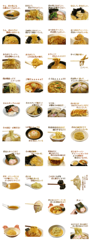 ラーメンが全てを肯定するスタンプです。とりあえず肯定しておけば問題なし。拉麺、らーめん、らあめん。つけ麺、炒飯、チャーハン。実写・写真面白い食べ物シリーズ。竹野チコ より発売