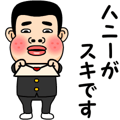 ハニー(彼女)が大好きな男子中学生。学ラン、昭和レトロ、ノスタルジー、ノスタルジック、青春、恋愛、初恋、告白。芋ジャージの名前スタンプの『くーが』作。