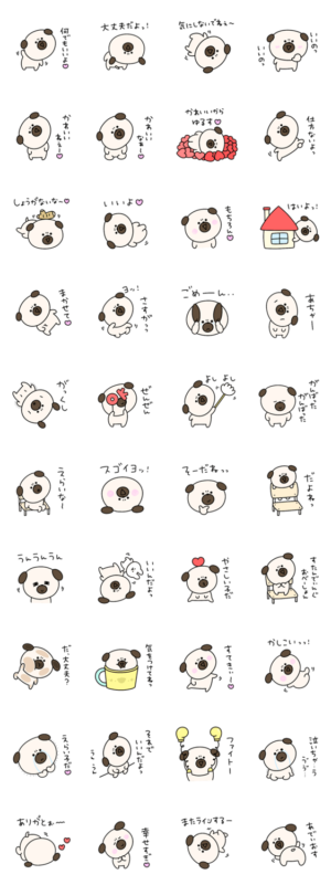 シュールなミニパグの甘々なスタンプです。eribo より発売