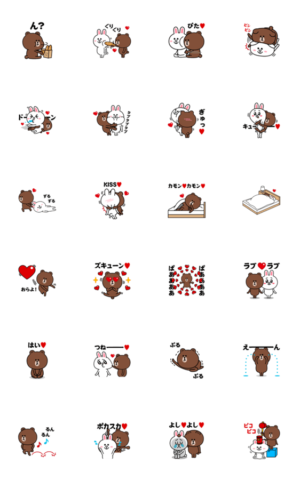 ブラウン&フレンズのLINEキャラクターズ、コニーとブラウンの毎日使える、日常会話の挨拶系、ラブラブスタンプ。大人向けの恋人やカップルで彼氏彼女のスタンプ。 ※BROWN & FRIENDS をみんなでつくろう!キャンペーン参加スタンプです4A-Studio(よんえーすたじお) より発売