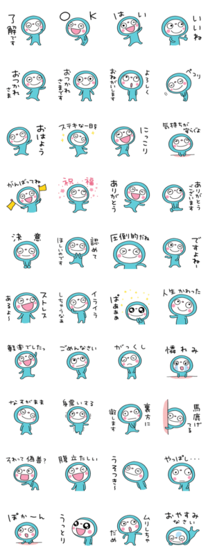 まるっとした、ふんわかウサギが登場です。「おはよう」から「なすがまま」から「うっとり」まで。ユニークなメッセージで、自由きままにあなたの気持ちを伝えてみよう。