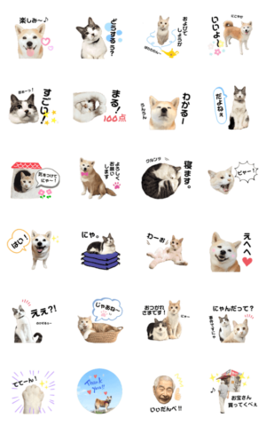 柴犬フクと、猫のタラとキビタロウ。② スタンプ画像一覧