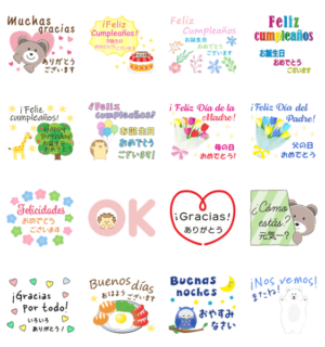 画面前面に動くスタンプが表示されるポップアップスタンプ☆スペイン語と日本語でのコミュニケーションに♩ 誕生日/母の日/父の日/あいさつ/español/japonés/castellano