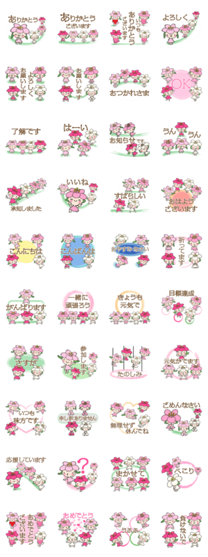カワイイ桜梅桃李ちゃん達が、楽しくあなたの気持ちを届けます。だいこんママ より発売
