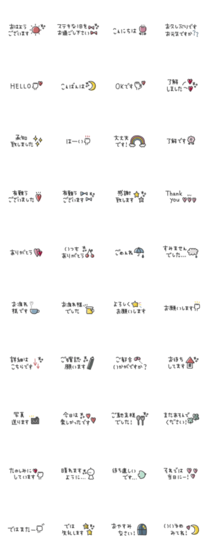1つあると便利なメッセージスタンプです。シンプル/省スペース/大人可愛い/くすみカラー/あいさつ/友達/家族/恋人/大人女子/手書き/敬語
