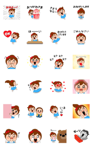 コミカルな動きとチャーミングな笑顔が素敵なスタンプです。ついこっちも笑顔になっちゃいますね。