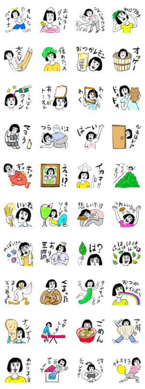 ちょっとシュールで感情豊かな女子のだじゃれスタンプです。新生活でストレス溜まってるあなたの気持ちを、無難でかわいい会話にぶっ込んで下さい。ママ友、仕事、死語、筆