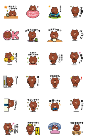 ブラウンの日常でよく使う敬語を集めたとっても使える動くスタンプです。