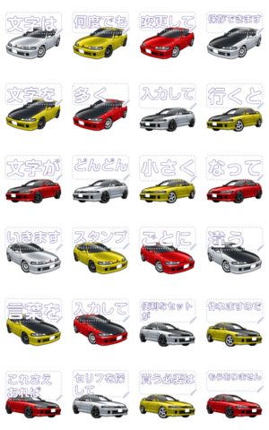 全スタンプ個別にセリフを自由入力して使えるスタンプですのでどんな言葉もスタンプにできます。 好きな車なのに使いたセリフでないという残念な事はもうありません。 現在この商品は一部のスマートフォン版LINE 10.3.0以上のトークルームでのみ使用できます。動作環境の最新情報はヘルプをご確認ください。あさごはん より発売