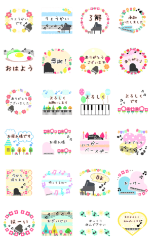 飛び出す!!北欧雑貨スタンプ/ピアノと音楽1 スタンプ画像一覧