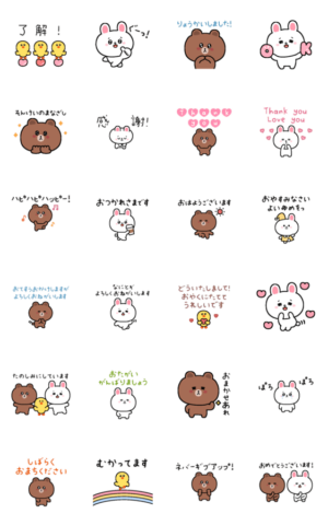 日常会話/よく使う/言葉/挨拶/普段使い/便利/ずっと使える/かわいい/可愛い/ハート/ゆるい/ブラウン/コニー/サリー/ラインキャラ/コラボ/くま/クマ/熊/うさぎ/ウサギ/動物 ※BROWN & FRIENDS をみんなでつくろう!キャンペーン参加スタンプですbearbear より発売