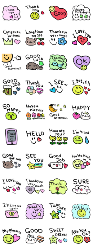 シンプルな日常会話スタンプです。日本語&英語スタンプnenerin より発売