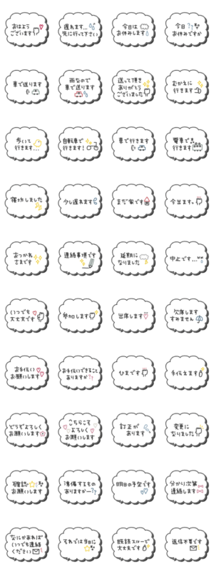 1つあると便利なメッセージスタンプです。シンプル/省スペース/大人可愛い/くすみカラー/あいさつ/友達/家族/恋人/大人女子/吹き出し/手書き/敬語/即レス/PTA/ママ友