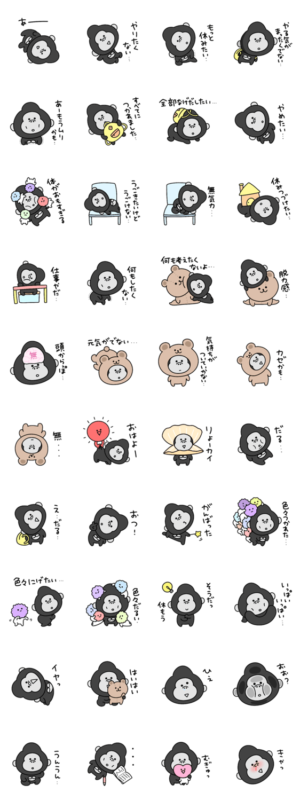 シュールなミニゴリラの無気力スタンプです。eribo より発売