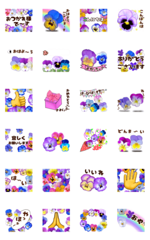 動いて癒されるパンジーとスミレと大文字 スタンプ情報