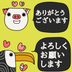 シンプルな省スペーススタンプなのでどんなシーンでも使えます。おはよう/よろしく/ありがとう/了解/おつかれさま/おやすみ/など。