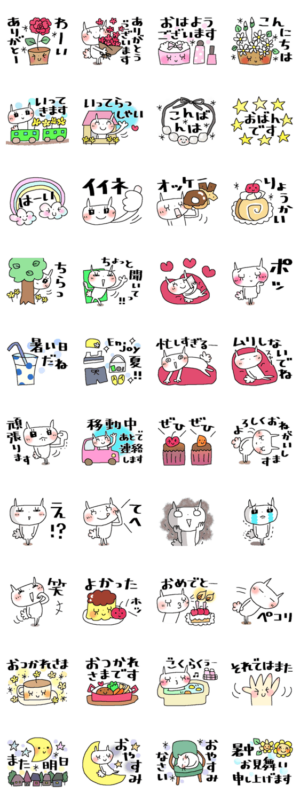 文字が大きくて見やすいシンプルな40個。やさしい気持ちが伝わる「うさきゅんの」ほっこりスタンプ。忙しい毎日に花とスイーツで癒しを。暑中見舞いや夏の挨拶も便利です。Konko3 より発売