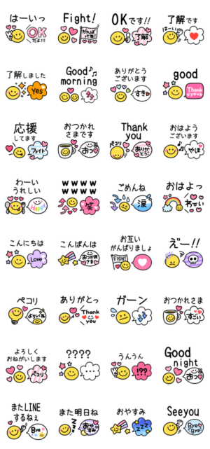 毎日使えるスマイル♡カラフル吹き出し スタンプ画像一覧