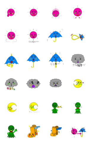 天気を劇画タッチにキャラクター化したオリジナルスタンプです!sora-riku より発売