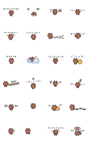 ちっちゃくて動いてるブラウンがとってもかわいくて癒されるスタンプです