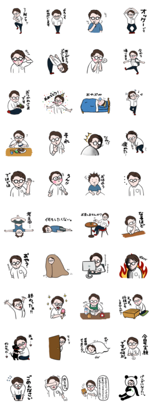 理系眼鏡男子の夫をモデルにしました。職業研究者。好きな動物はパンダ、犬。趣味はお菓子作り、将棋、マンガ、パソコン。いつも眠たい食いしん坊の毎日使えるスタンプ。