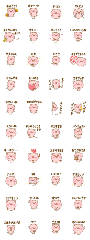 ほめて褒めるぶたひなカスタム スタンプ画像一覧